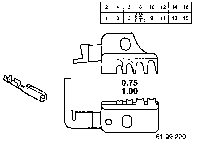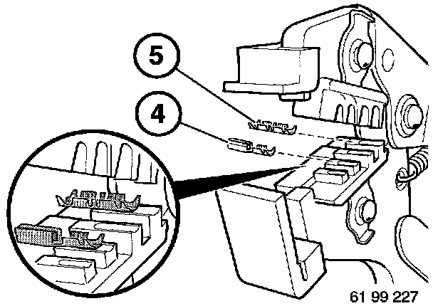 NOTE: Designation on nests (3) of special tool 61 9 042 indicate which contacts can be used in which crimping nests.