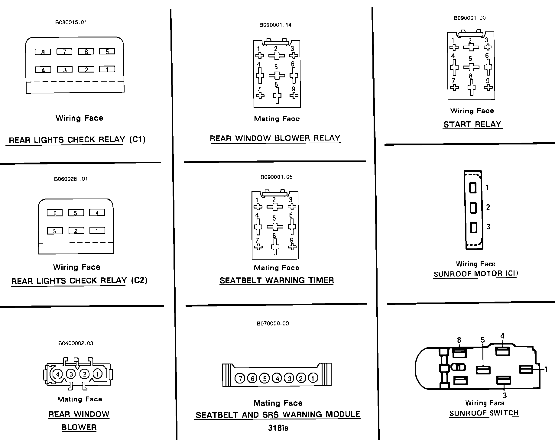 Connector Views: Rear Lamps Check Relay Thru Sunroof Switch: