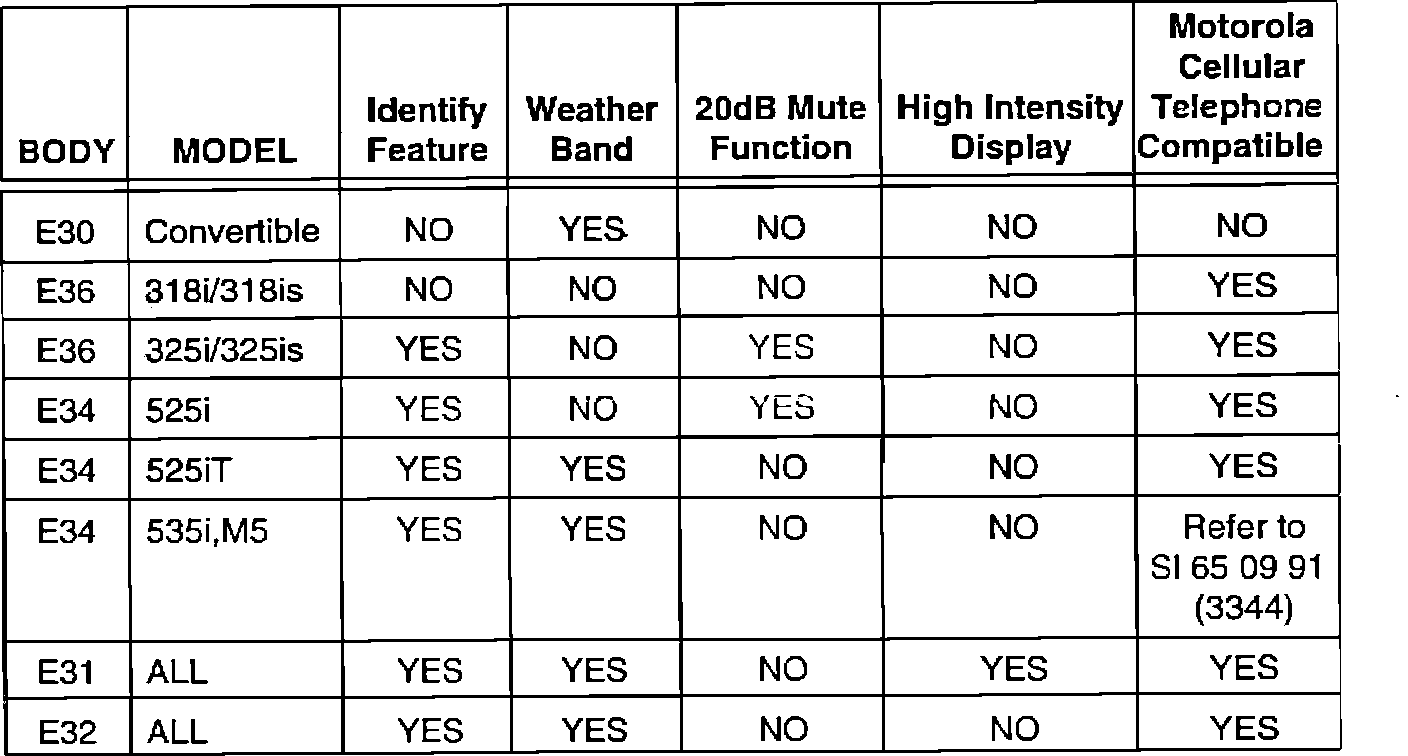 The 1993 MY E34 535i may exhibit a compatibility problem with certain types of Motorola telephones. Refer to S.I. bulletin number 65 09 91 (3344) for further information. Affected '93 MY 535i Pioneer radios can be identified by a "535i ONLY" decal on the side of the radio.