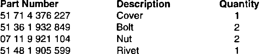 In case of complaint, replace the original metal cover with the new plastic cover as per the parts list. Tighten bolts to 10 N-m and secure nuts with Loctite.
