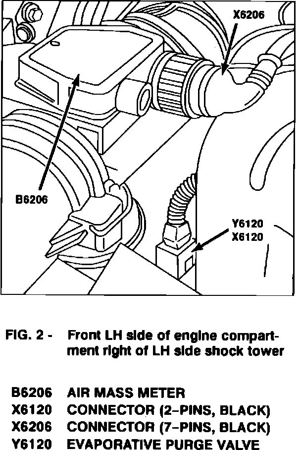 The air mass meter is located in the induction system between the air cleaner and the intake manifold.