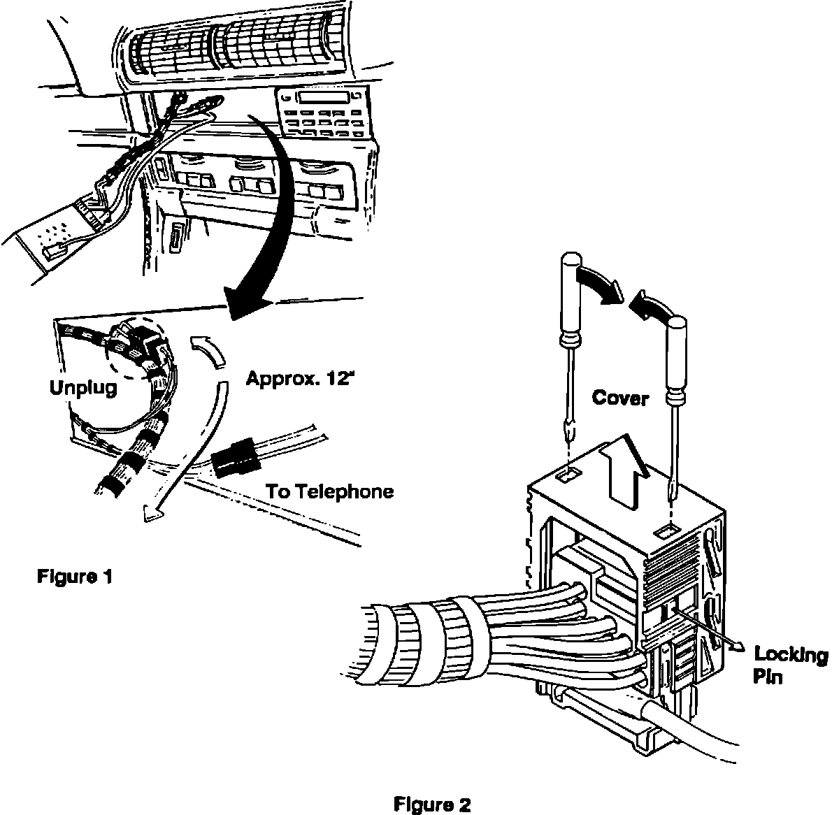 2. Locate 2-pin connector between radio and harness and disconnect. See Figure # 1. If the connector cannot be located, or access limitations prevent disconnection, proceed with "PLAN B."