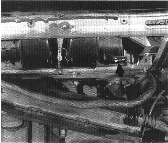12. Push wiper arm shafts down into cowl area and maneuver wiper console out of cowl.