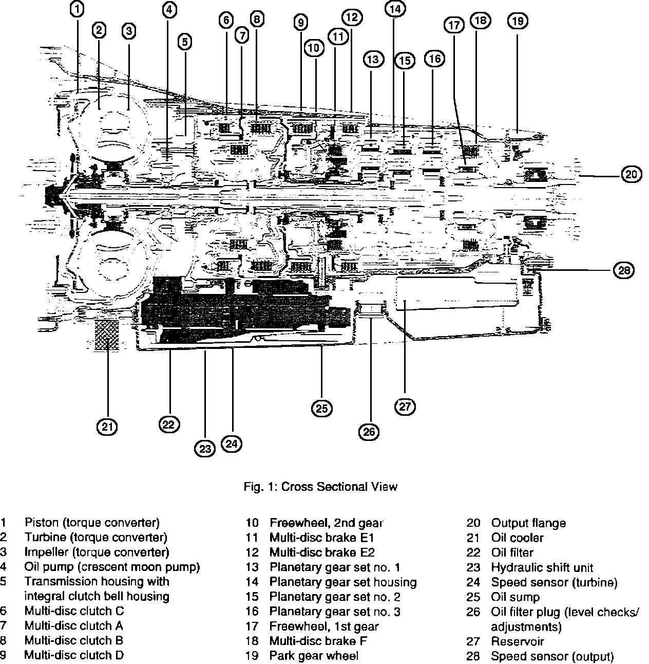 The A5S 560Z is an electronically controlled, five-speed automatic transmission with a lock-up clutch type torque converter. Three planetary gear sets (Wilson gearing), three rotating multiple disc clutches, four multiple disc brake-clutches, and two sprag clutches (freewheels) are used to provide the five forward speeds and reverse operation.