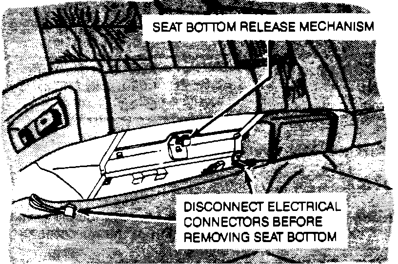 Caution: Use care when removing or installing the cushion assembly so that the seat does not drop down and damage the battery or electrical components.