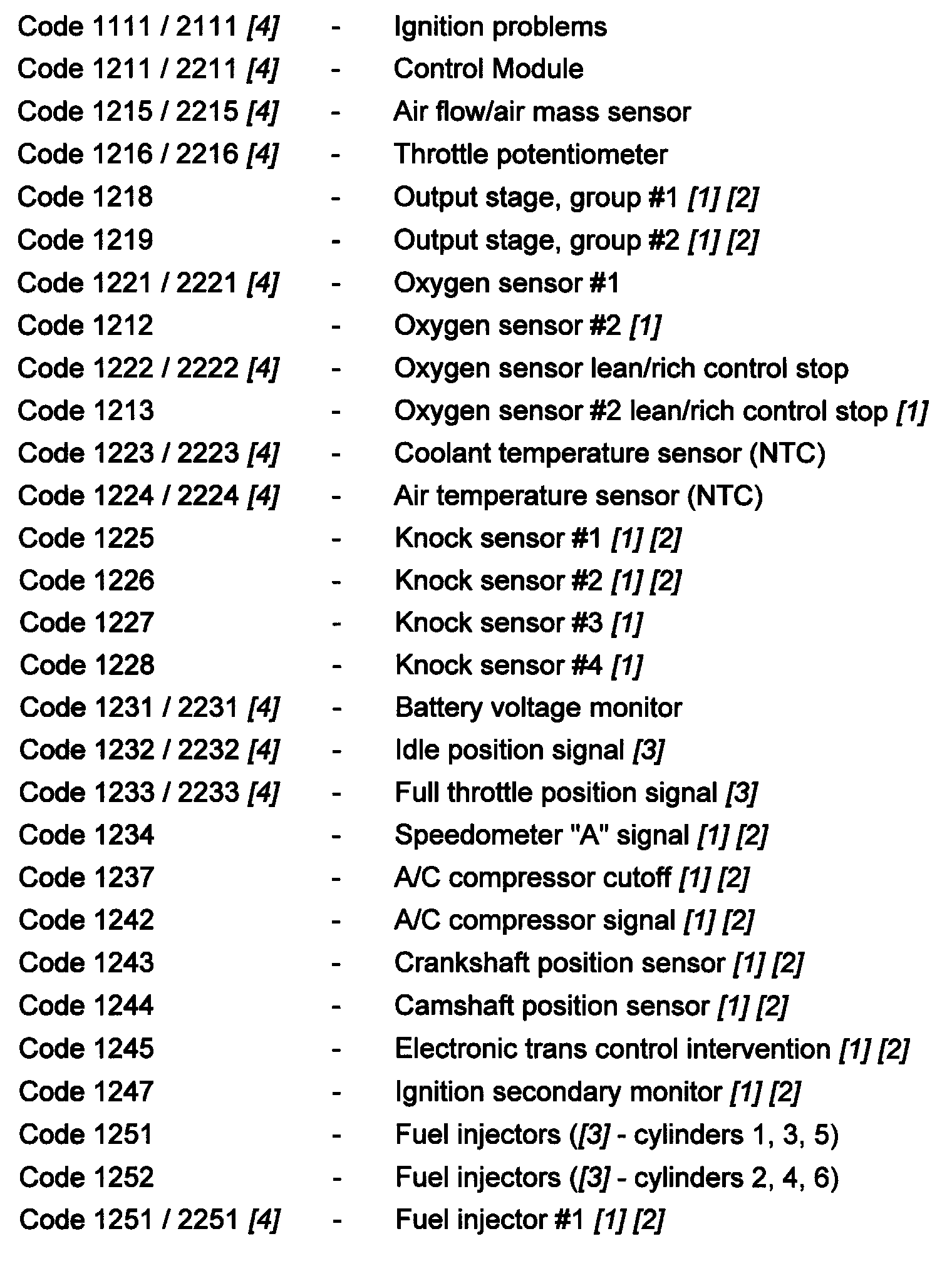 Code 1111/2111 - 1251/2251: