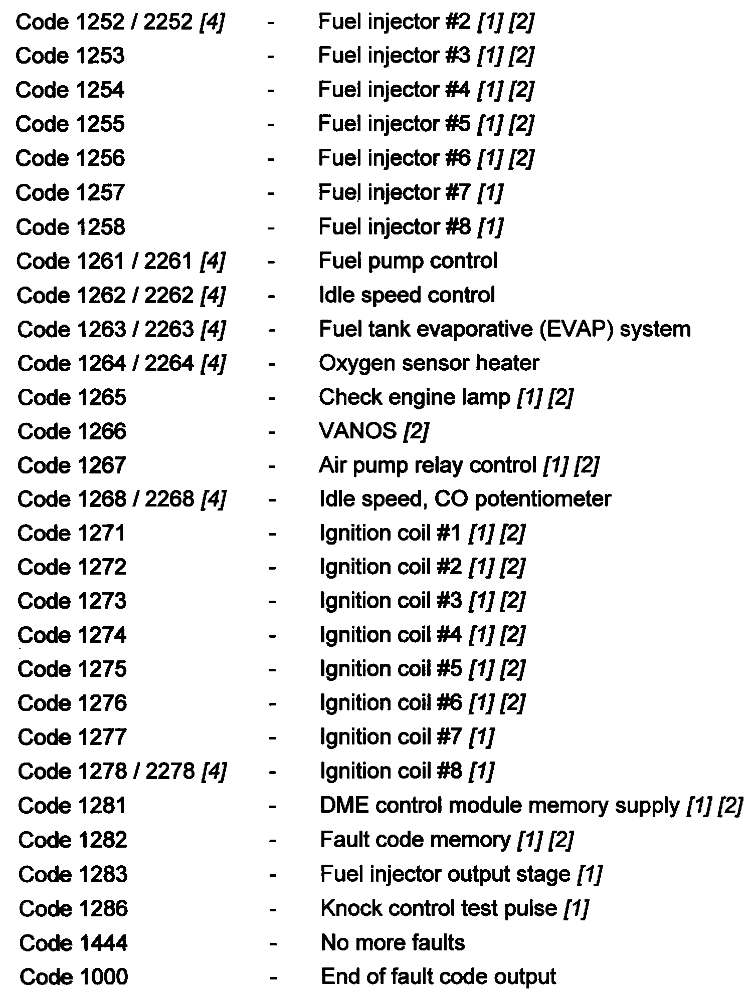 Diagnostic Trouble Code Descriptions