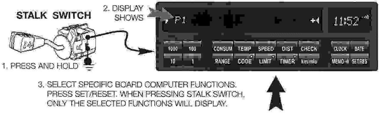 - Press and hold the turn signal lever - P1 is displayed