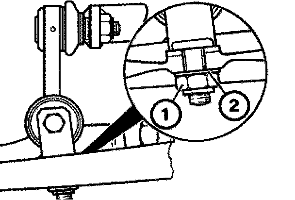Replace self-locking nuts (1). Fit shim (2). Tightening torque, refer to Specifications.