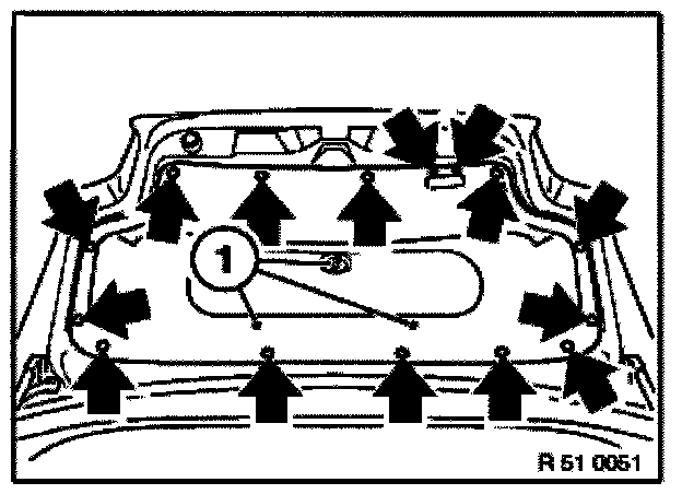 Unfasten the clips, loosen screw (1) and remove the tool box.
