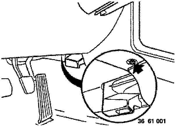 - Slide in special tool 61 3 300 with flattened end (A) facing ring antenna and lever out ring antenna.