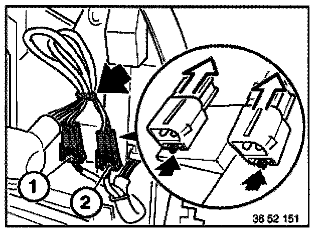 Connect special tools 61 2 071 and 61 2 072 (adapter leads) on white plug and 12 V power supply source.