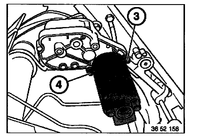 Unscrew screws (3 and 4) and remove rear end up/down control drive.