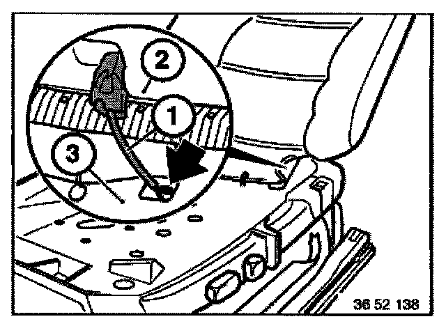 Guide plug (1) through seat cushion shell (2) and remove cushion padding (3).