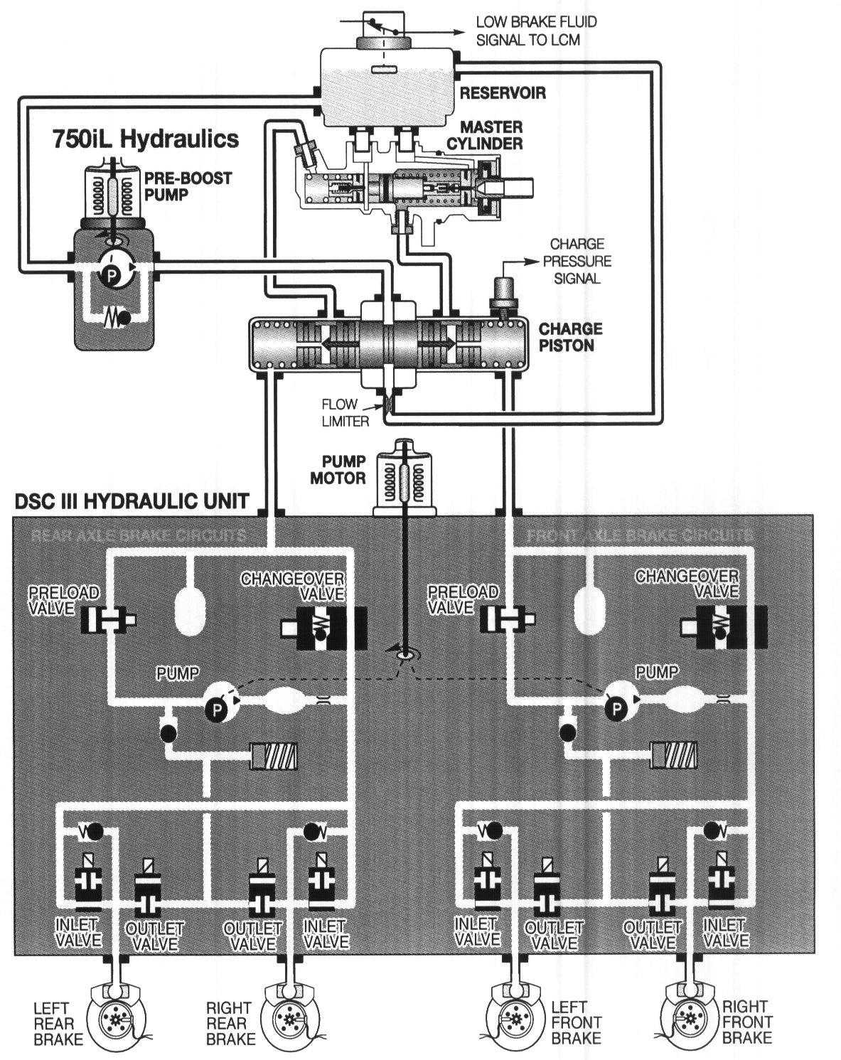 ^ 75OiL = Pre-boost pump and separate charge piston. These components are also mounted next to the brake fluid master cylinder and fluid reservoir.