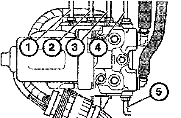 - Unfasten brake leads (1 through 5) from hydraulic unit.