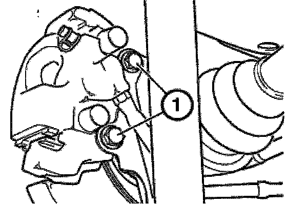 - Unscrew bolts (1). Remove and suspend brake caliper from vehicle.