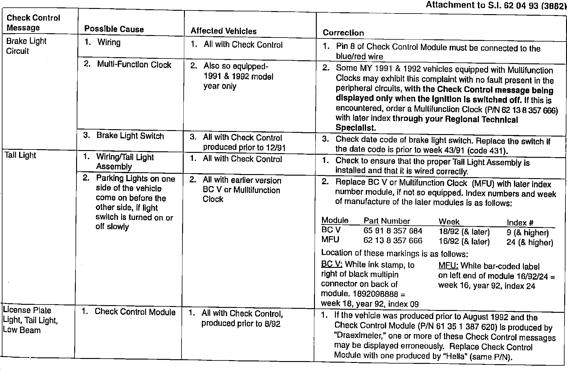 3 Series (E36) - Vehicles Equipped with Check Control