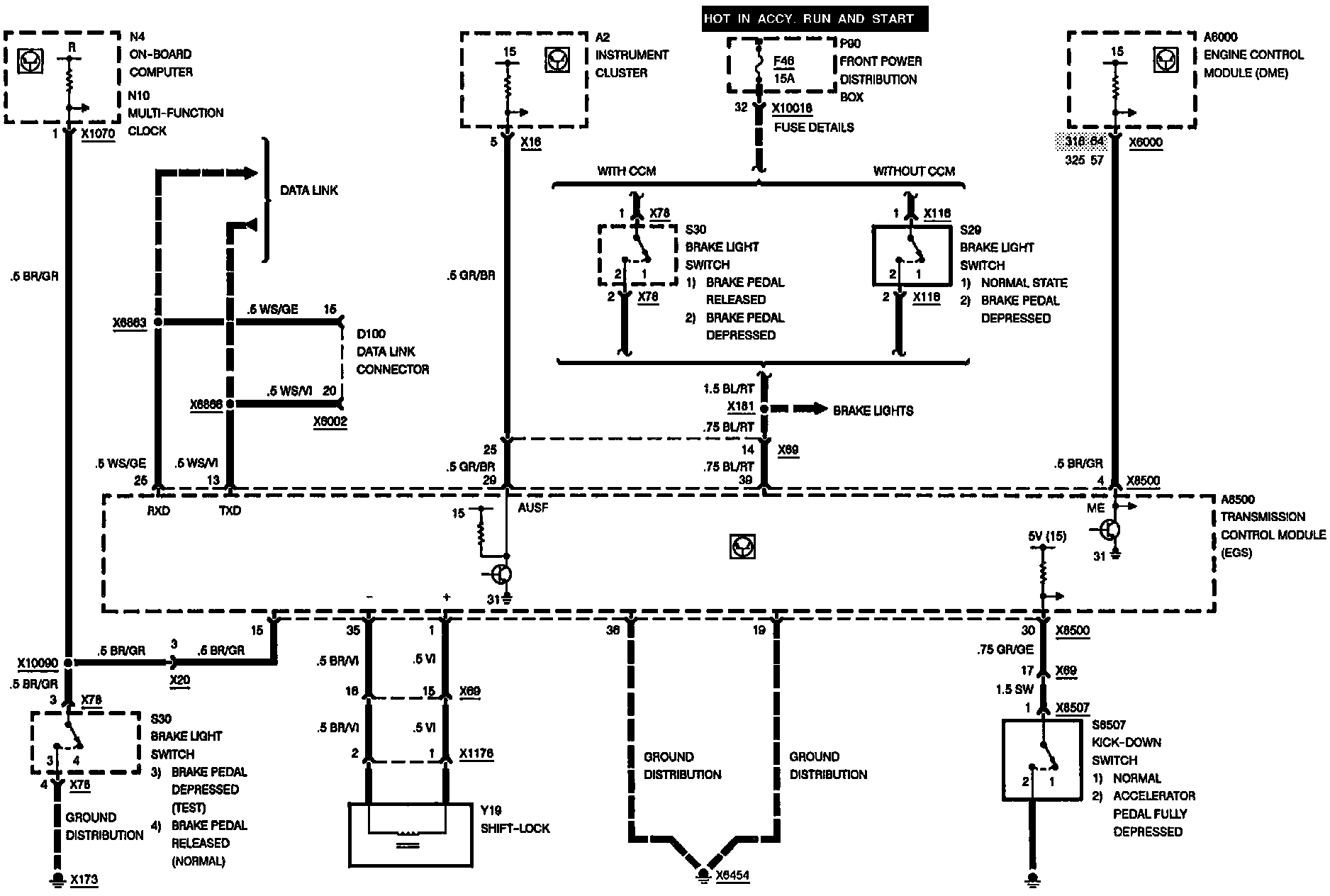 Electronic Transmission Control: Shift Lock, Datalink, Kick-Down Switch: