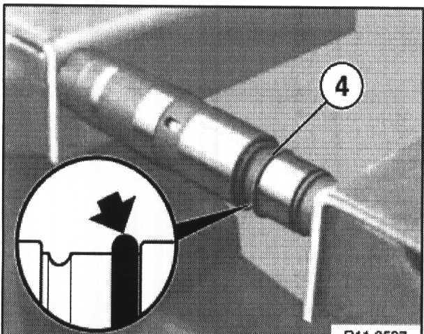 Insert detent ring (4) in groove of hydraulic piston.