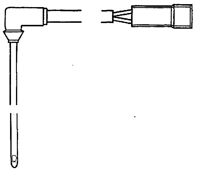 The temperature sensor is a Negative Temperature Coefficient (NTC) thermistor whose resistance varies according to the temperature of the evaporator core. Resistance is higher at lower temperatures, and decreases as the temperature rises.