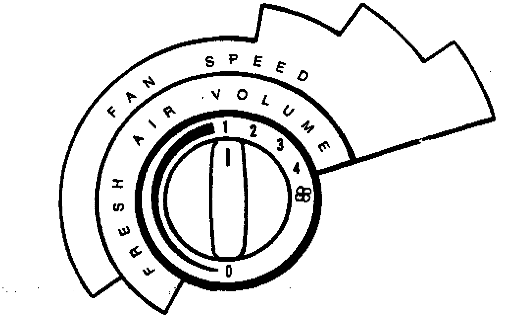 The fresh air flaps are opened linearly through the wedge section of the fan switch, and are open 100% at the fan speed 1 position. The fan runs at low speed from a position approximately 45° from the OFF position, until fan speed 2 is selected. When the fan switch is OFF, the air conditioner compressor and recirculation modes will not operate.