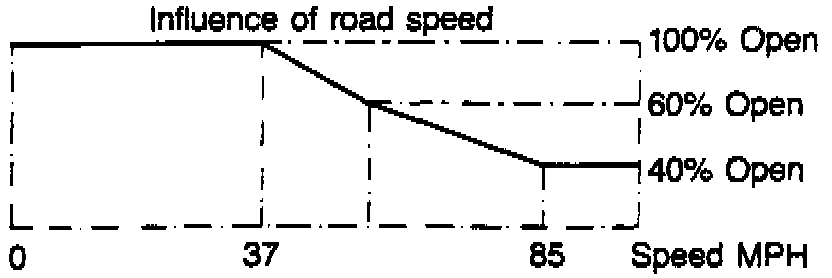 Road speed influences the opening angle of the fresh air flaps. The fresh air flaps will start to close at 37 mph and close linearly to 40% open at 85 mph.