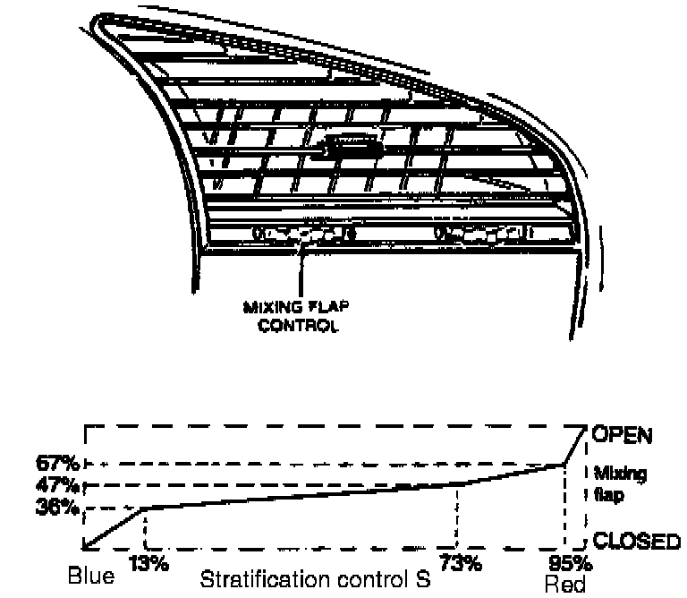 Stratified air is available when the vent (face level) is selected and on either side of the vent detent. The mixing flap stepper motor regulates the degree of stratification. Stratified air temperature is adjusted by the knurled wheel located on the center vent outlet.