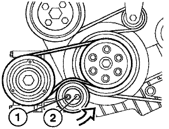 - Unfasten screw (1) and remove drive belt from compressor.