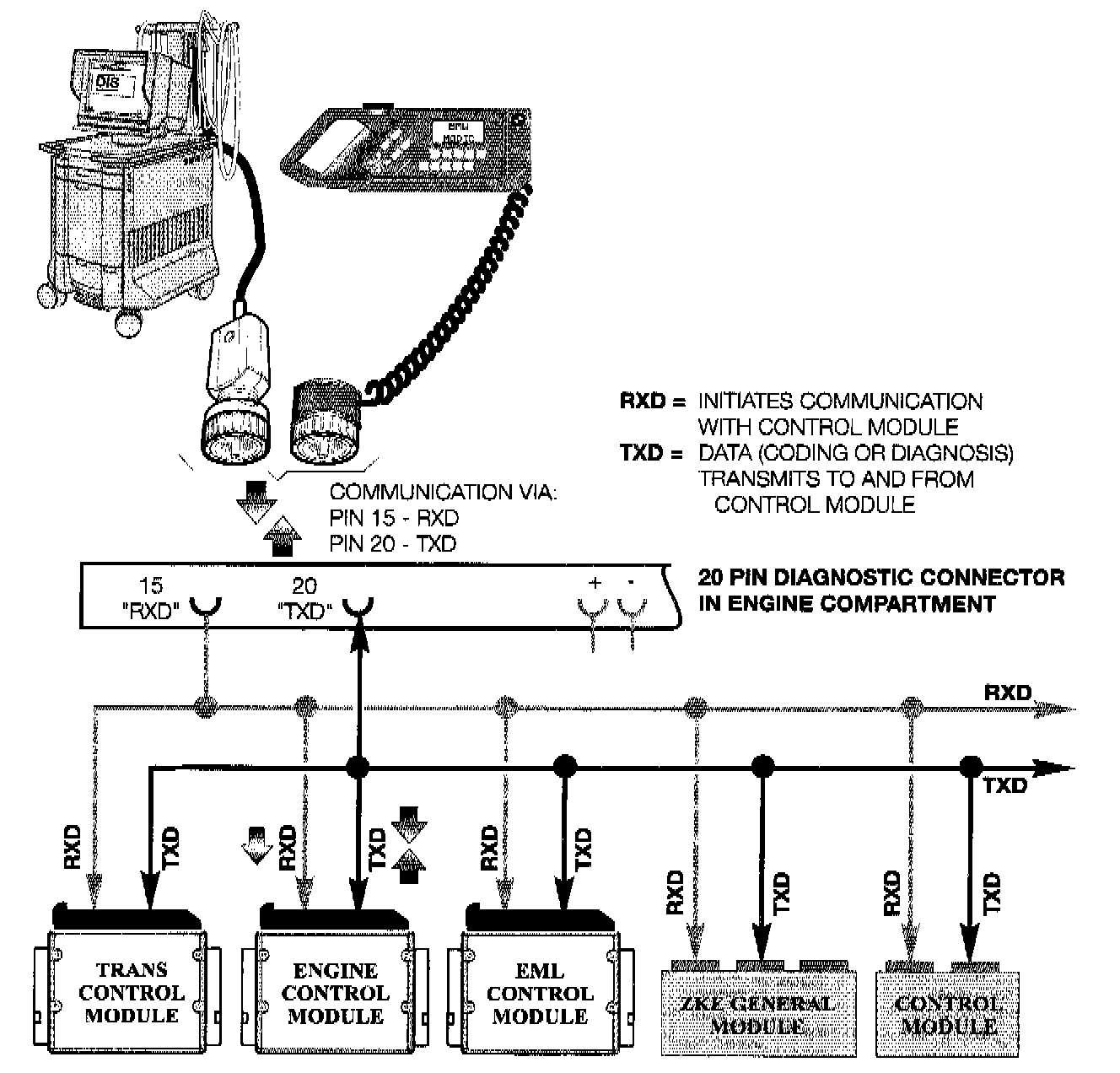 ^ TXD is a two way communication link where the diagnostic data is transferred back and forth between the DIS/MoDiC and the control module.