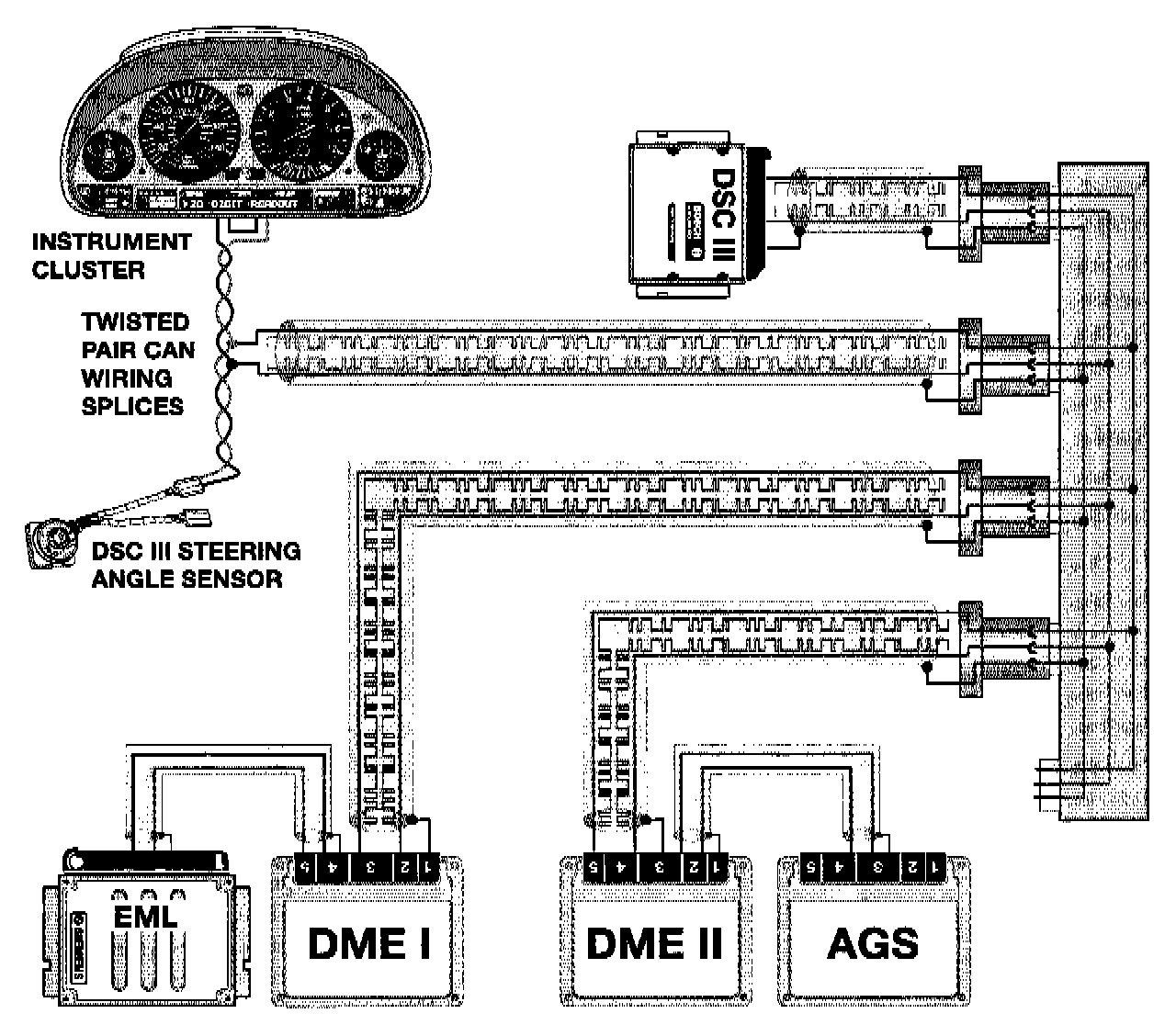 With the introduction of the 1995 75OiL, the CAN bus was expanded to include both engine control modules, transmission control module, EML IIIs control module and the DSC II control module.