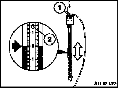 With both valves (1) open approximately 1/4 turn, zero the sliding scale using the knob (2) as shown in the illustration below.