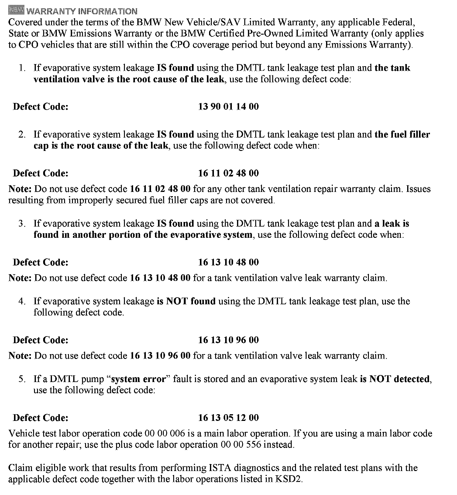 Only perform the applicable test plans for the faults stored. Performing additional leak measurements using a smoke machine on a vehicle that does not fail the DMTL leakage test plan will not be reimbursed by Warranty. Do not replace the fuel cap, DMTL pump or carbon canister.