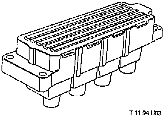 A one piece ignition coil is used which is located on the front of the right front strut tower.
