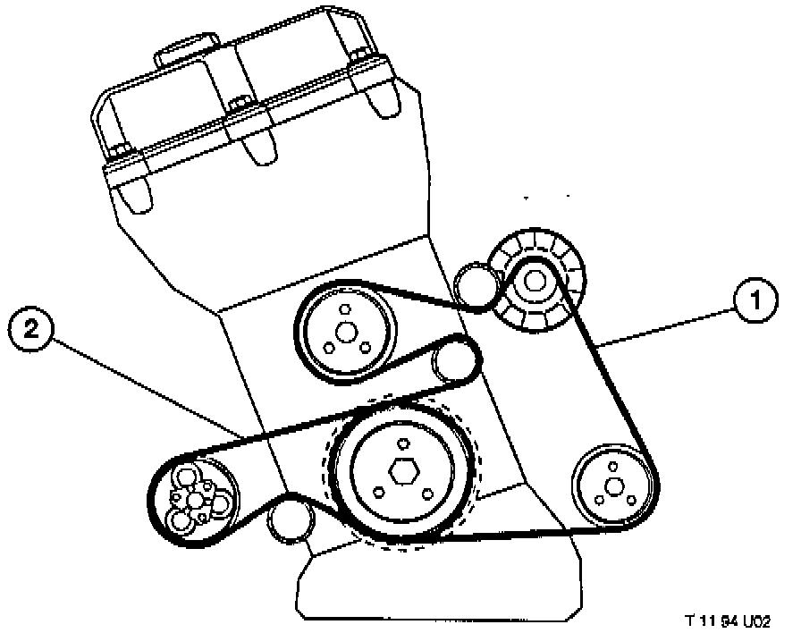 - Two poly v-belts drive all accessory component rotary drives. The first belt (2) drives the new compact design air conditioning compressor. Note: See fill capacity label on the vehicle when servicing the A/C system for new system filling capacity.