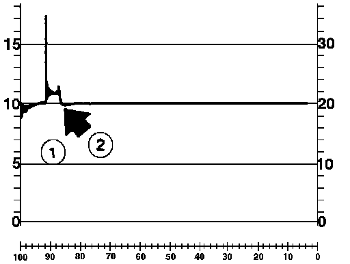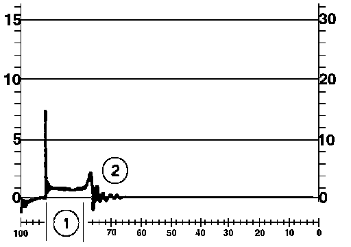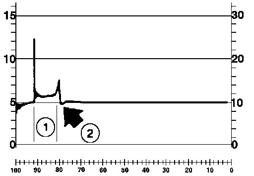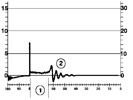 Evaluation of Voltage Peaks and Dying-Out Process at Idling Speed1 Beginning of dying-out processes with normal peaks upwards and downwards.