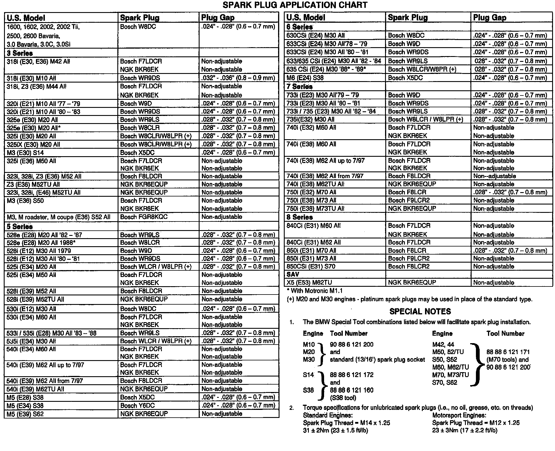 Attached is an update to the quick reference chart which includes all current spark plug applications and engine oil capacities.