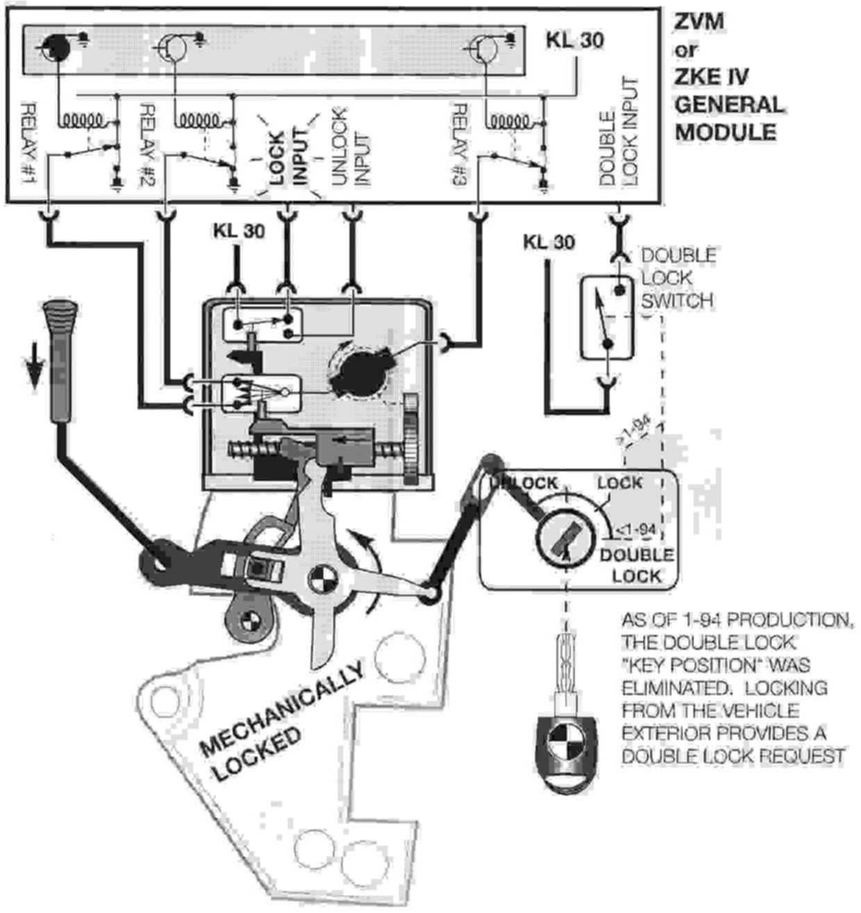 At this point the external door handles are decoupled from the latch mechanism preventing entry from outside of the vehicle.
