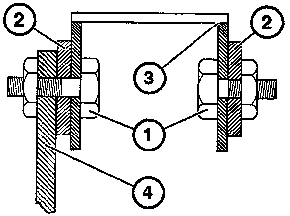 Install new, shorter bolt (M8 x 22 Z1) on left side of mounting bracket, and tighten to 21.4 N-m. The nut must be in the position shown.