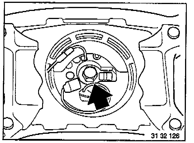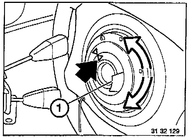 Press down spring (1). Turn contact clockwise or counterclockwise as far as stop. Turn back about three turns until arrows for center position are aligned.