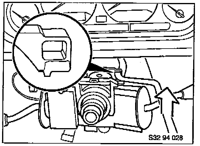 Insert special tool 32 3 010 fully into mounting hole of ignition switch housing as shown.