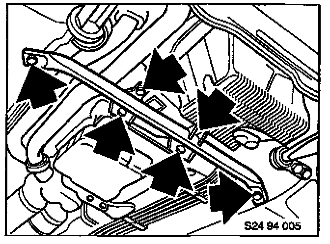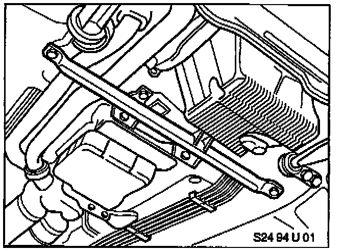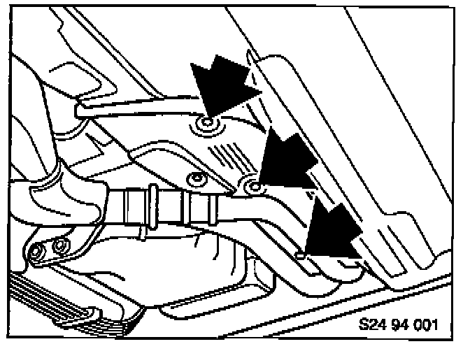 Replace transmission mounts and body brace on 325iA/325i.Remove side heat shields. Disconnect O2 sensor bracket from cross brace.