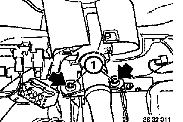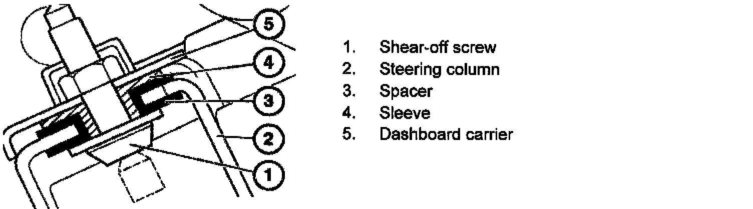 Unfasten shear-off screws (1) (e.g. use chisel on screw taper and unfasten screw with hammer or mill off screw taper) and remove steering column.