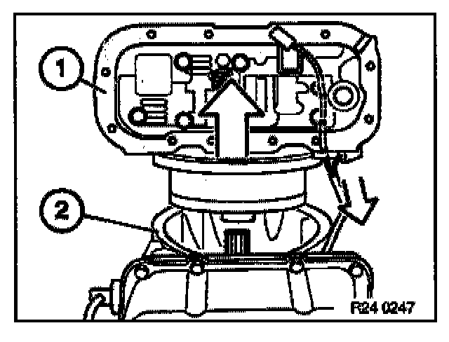 Carefully cut gasket (1) as close as possible to center support (2) and remove.