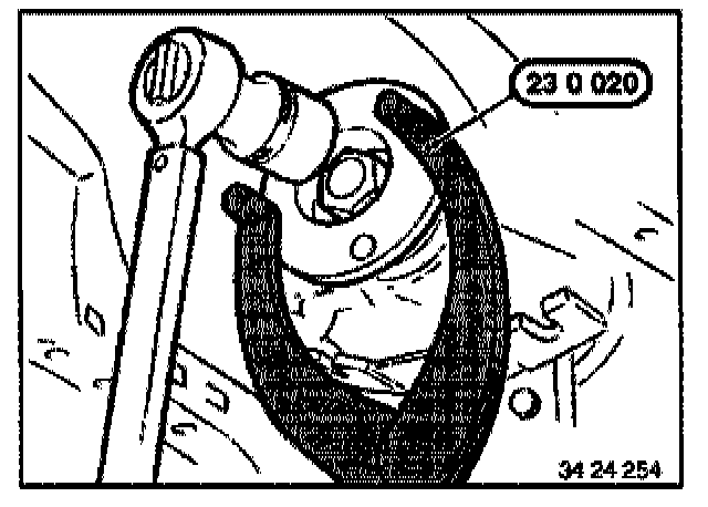 Hold output flange with special tool 23 0 020.
