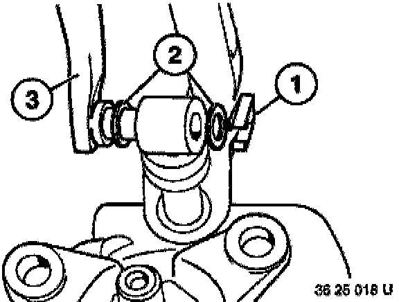 - Withdraw selector rod (3) from selector linkage joint and remove washers (2).
