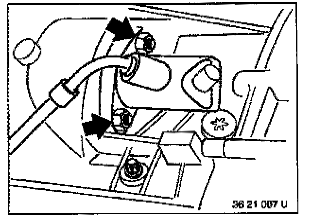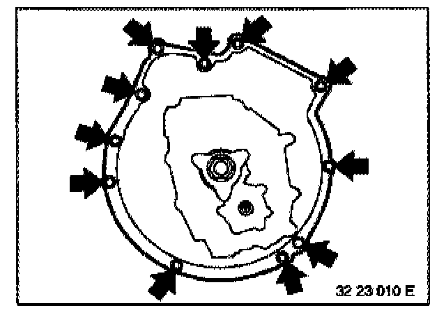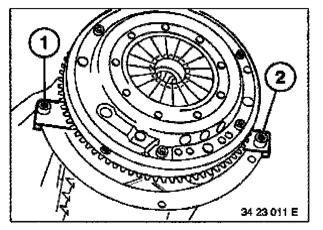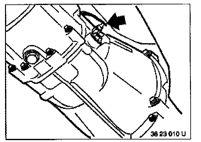 - Unfasten nuts and remove clutch slave cylinder (pressure line remains connected).