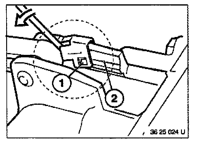 - Use a screwdriver to lift out spring (1) from the lug (2) on the housing and swivel upwards.
