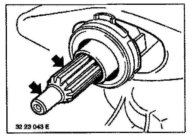 - Clean spline grooves and guide spigots on transmission input shaft and apply a thin coat of grease.