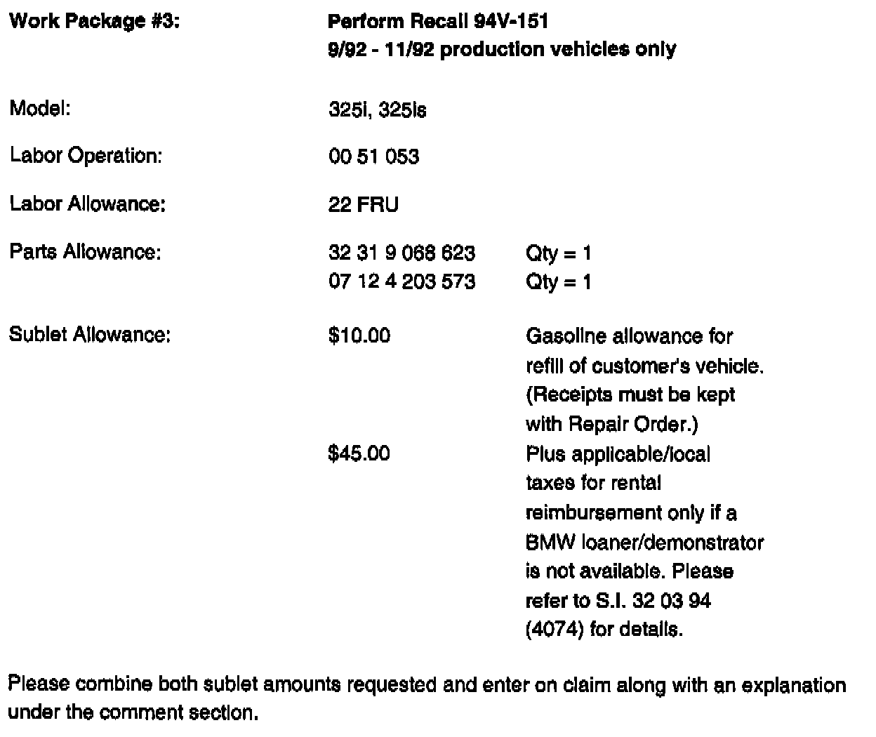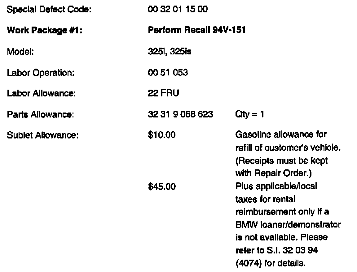 This campaign affects all 1993 and 1994 model year 325i and 325is vehicles that have not previously been modified under Recall 94V-151.